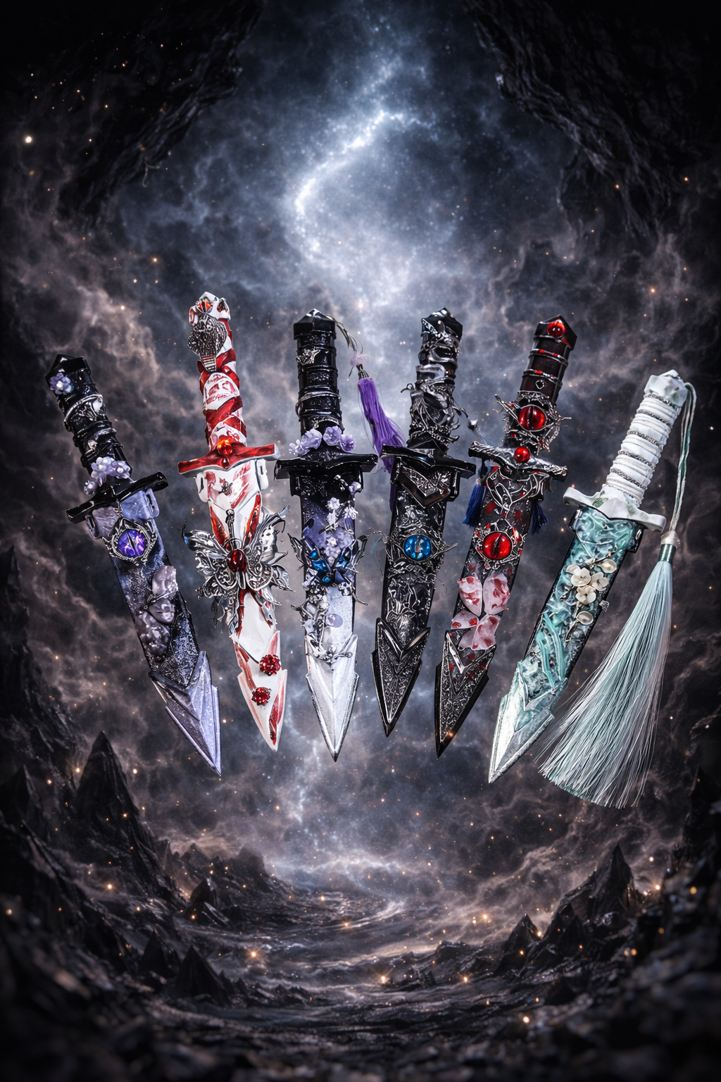 Each dagger is carefully handcrafted by hand, with close attention to every detail, from the blade design to the final embellishments. We take inspiration from dark fantasy and gothic aesthetics, ensuring that every piece is unique and carries its own story.